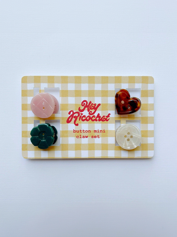 ✦ Includes four mini claws: Round white, round rose with carved lines, heart-shaped tortoise shell, and flower-shaped viridian.
