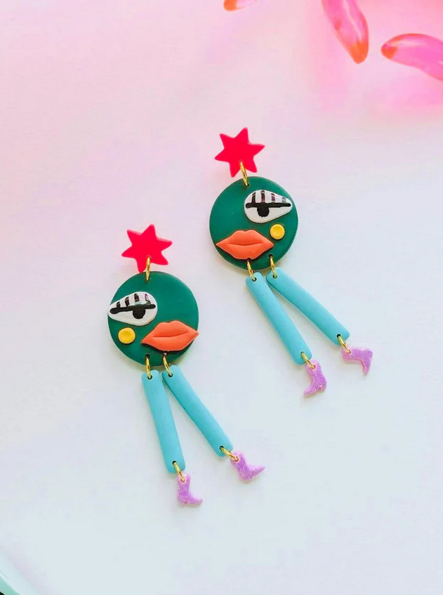 Care instruction: Polymer clay is durable and lightweight, however it should be handled with care. We recommend not bending the clay, because although it is durable, it can still break. They can also be scratched so be sure to keep them in a safe, dry place. It is not recommended to wear in water (showering or swimming).