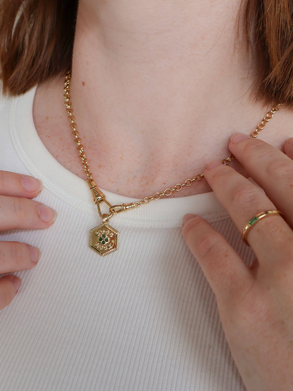 ⦠Front-clasp chain measures 18" long. Charm measures 16mm.