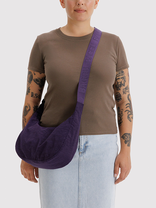 Baggu's Medium Nylon Crescent Bag is effortlessly cool, comfortably casual, and large enough to carry more than just the essentials. You can wear it slung over your shoulder or crossbody for a hands-free experience.