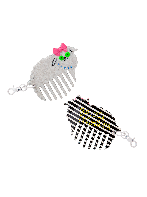✦ A glamorous and floofy friend on an easy-to-attach, metal clasp.