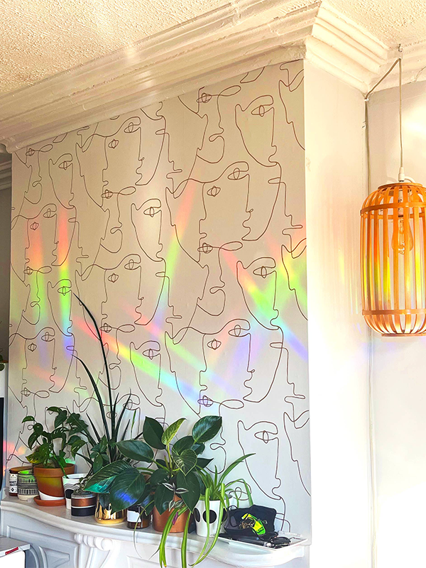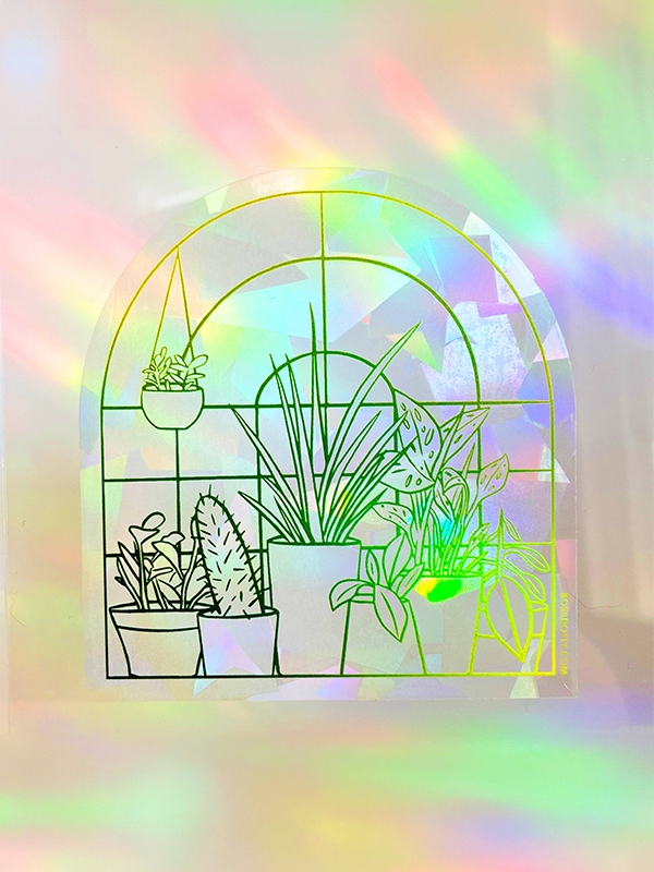 ✦ Printed on a special diffraction film that transforms light into a prism of rainbow hues when placed in direct sunlight.