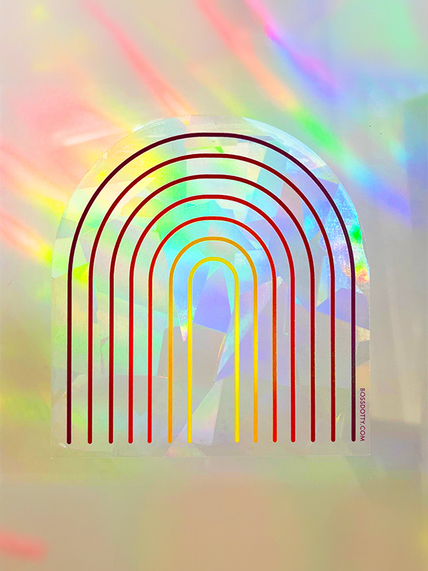 ⦠Printed on a special diffraction film that transforms light into a prism of rainbow hues when placed in direct sunlight.
