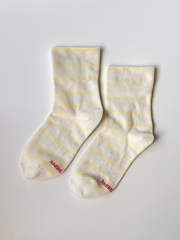 The Wally Socks are made in a beautifully classic stripe that's reminiscent of Parisian chic. She loves to be styled with a colorful pair of Mary Janes, ballet flats, or a cool city sneaker.