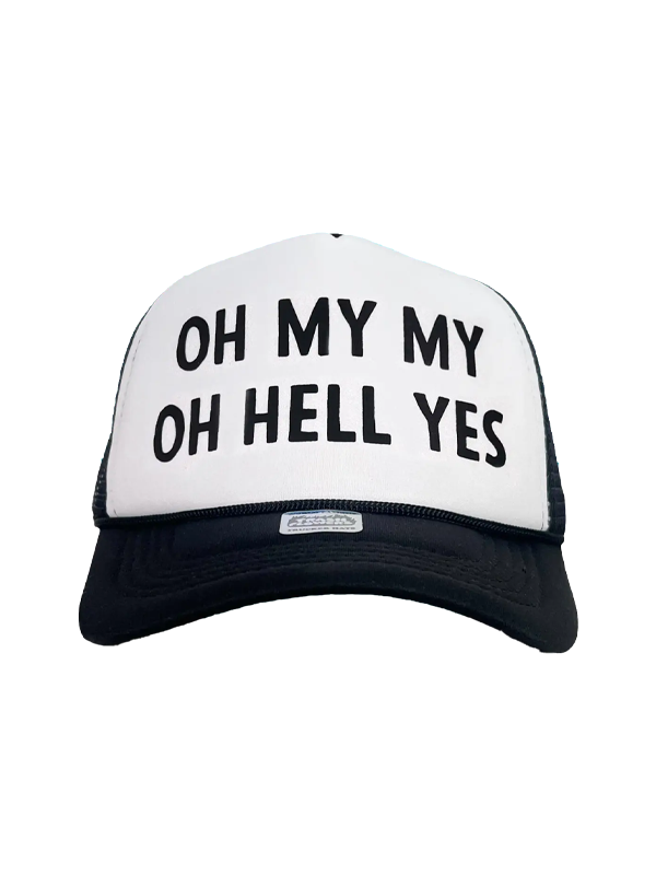 Oh My My Oh Hell Yes Trucker Hat: Black/White