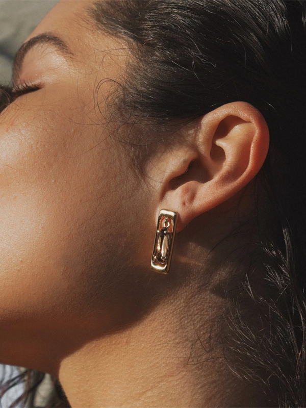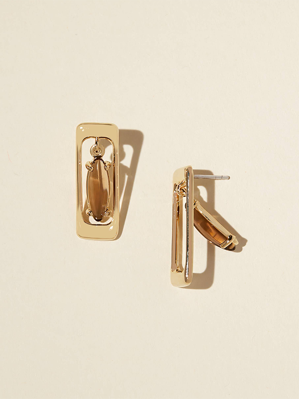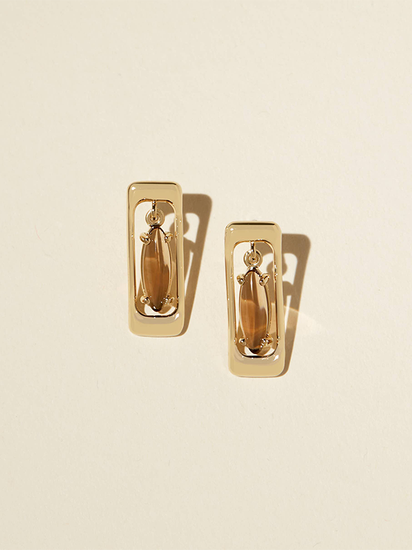 Soft rectangles frame elongated oval glass cabochons in the sweetest little earrings. ✨