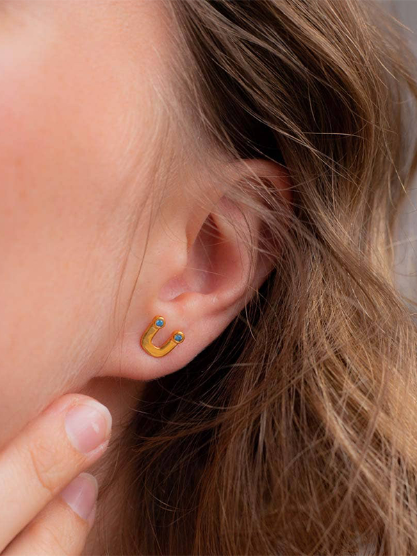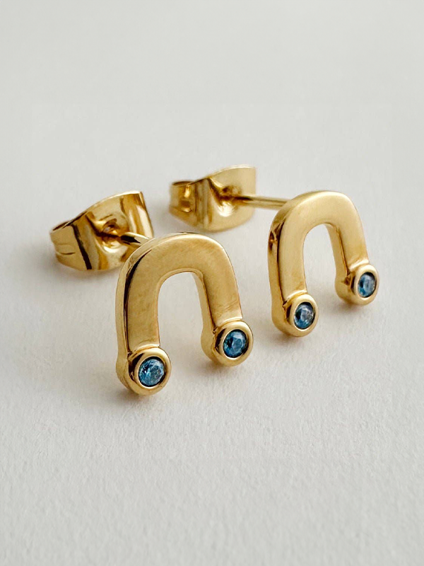 Tiny, arc studs dotted with two tiny blue crystals. ☁️✨