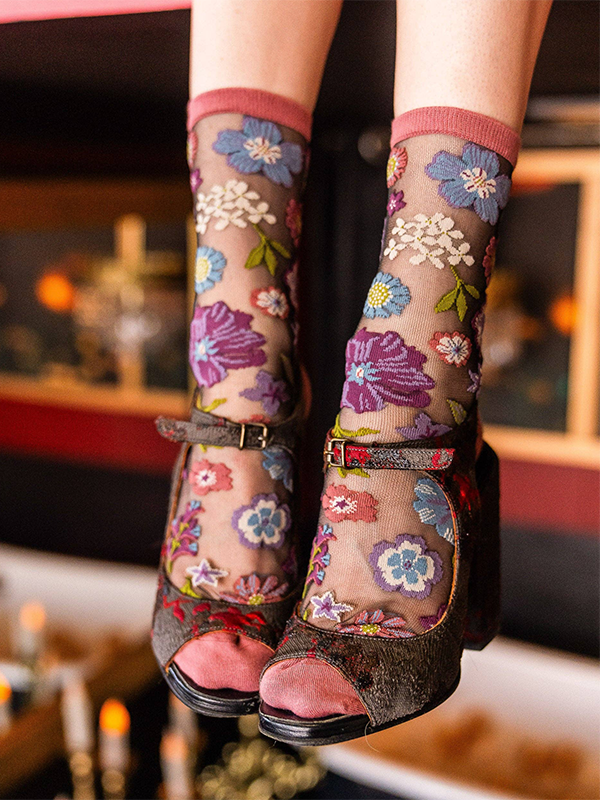 Romantic, vintage-inspired, and enchanting β€” the Dark Florals Black Sheer Sock is here to bring brooding beauty to your sock drawer. 🌺✨