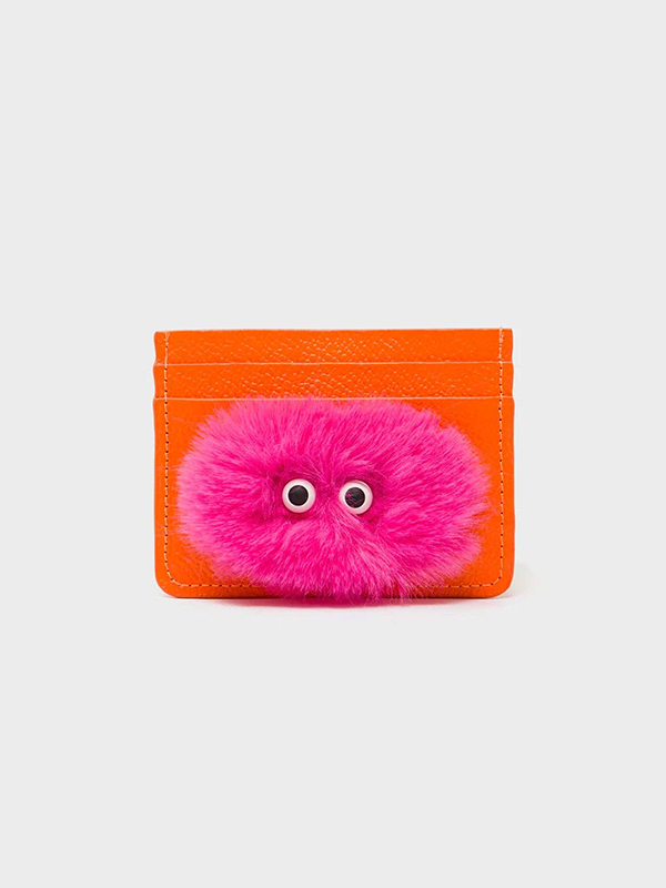 Filium Leather Cardholder: Fuzzy Monster (Vermillion)