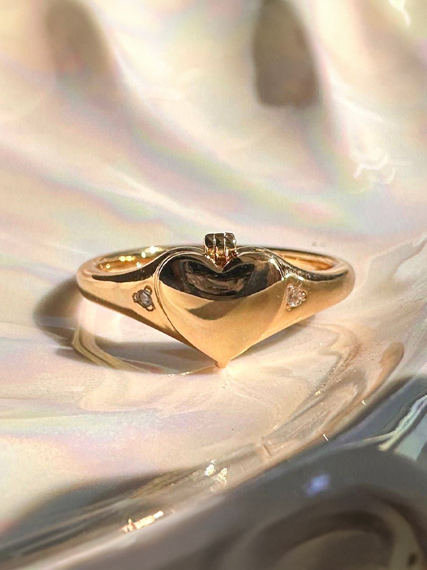 A dainty ring with a tiny heart-shaped locket that actually opens, perfect for tucking away a mini photo or keepsake.