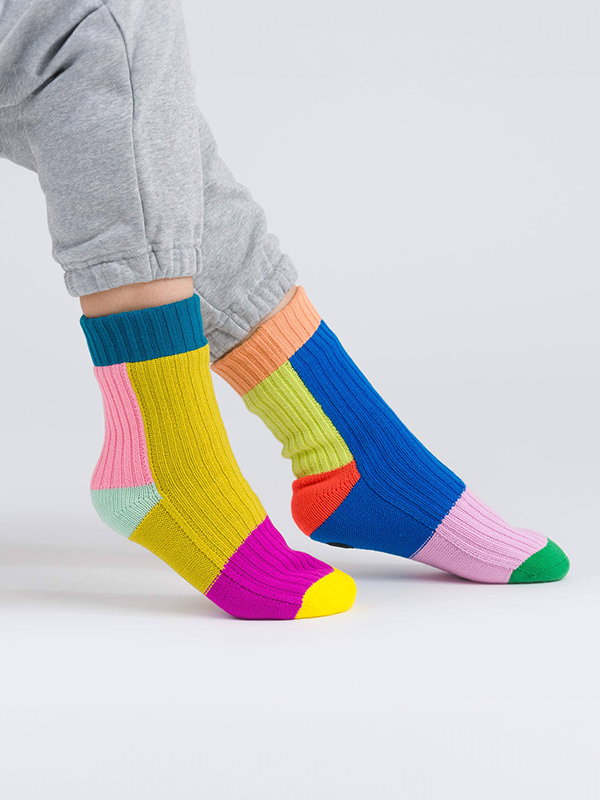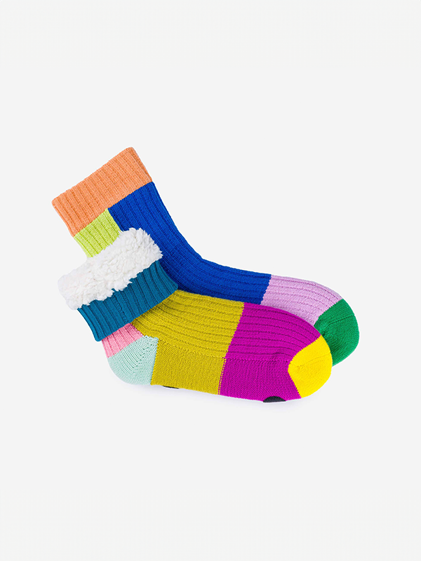 ✦ Mismatched, unexpected color combos on each foot will keep you cozy (and bright) indoors.