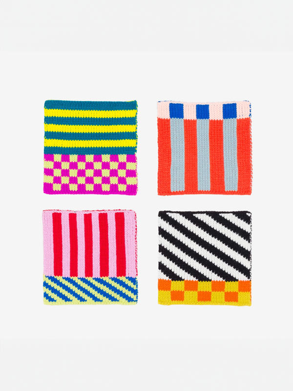 ✦ Set of 4 coasters with mix-and-match two-tone stripes.