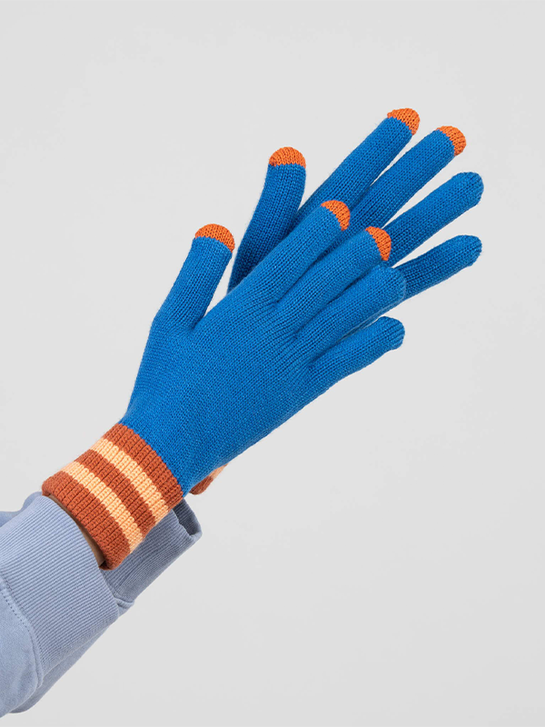 Knit gloves with a contrasting striped cuff — a fun and happy update to a classic winter accessory. 🧤✨