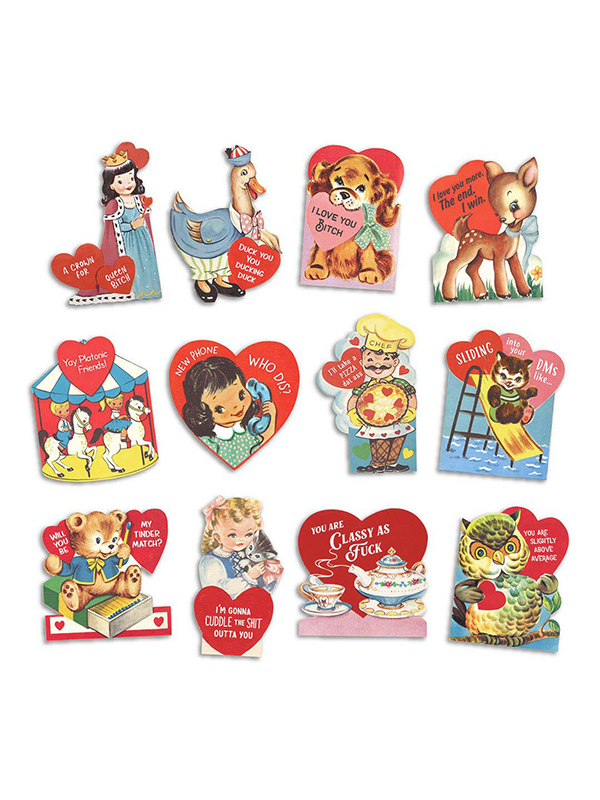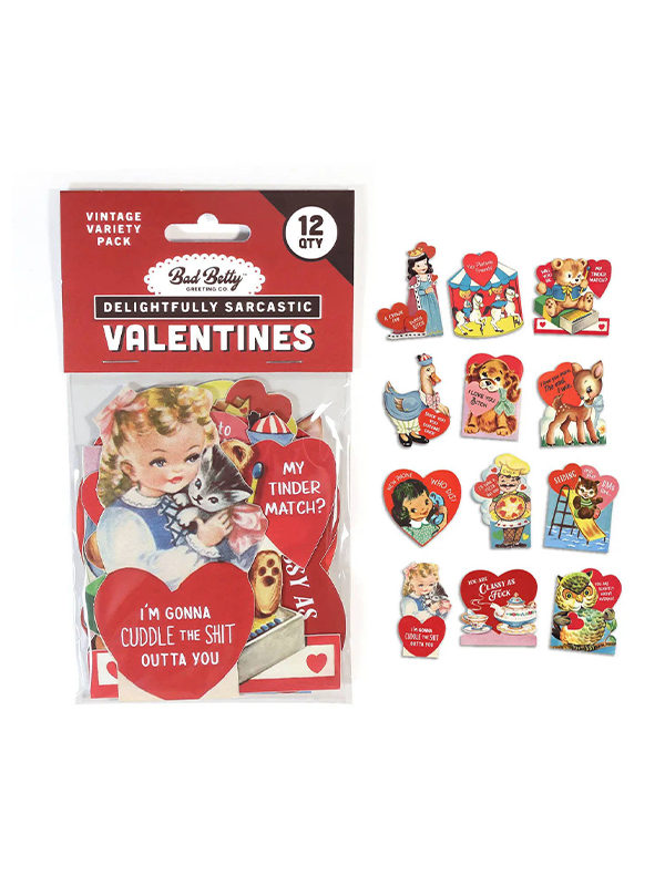 β¦ Pack of 12 delightfully sarcastic and goofy Valentine's Day cards.