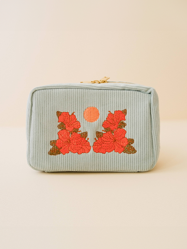 Embroidered with a bold sun design, this bag includes internal pockets to keep everything neat and is completed with a double zip fastening.