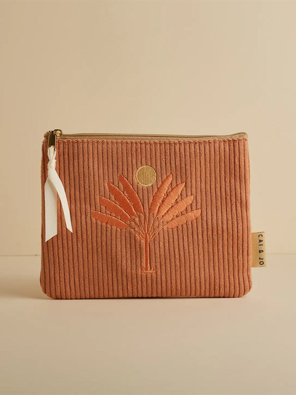 Keep organized with this flat, fully lined corduroy pouch, perfect for keeping in your handbag!