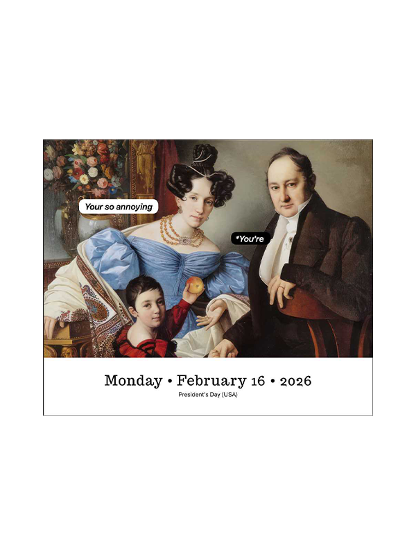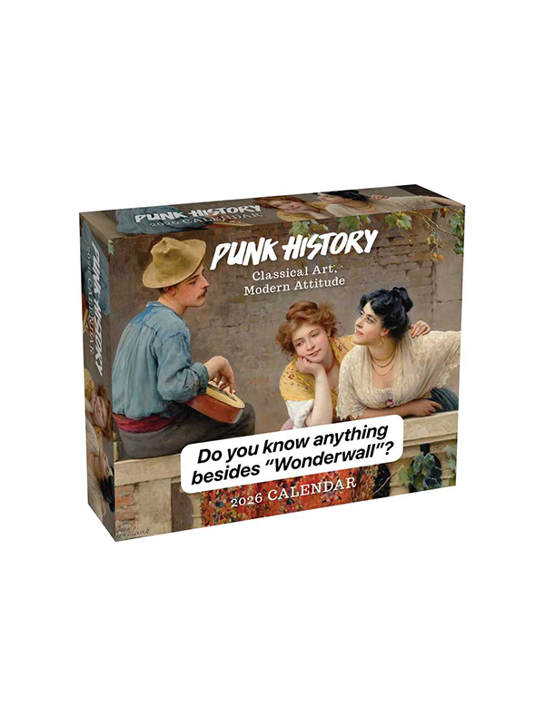 The Punk History 2026 Day-to-Day Calendar is your daily fix of classical art with a modern, sarcastic twist. With art from the Renaissance to Impressionism, and meme-worthy captions about everything from relationship problems to annoying work emails, this calendar is perfect for those who appreciate a mix of high culture and relatable humor.