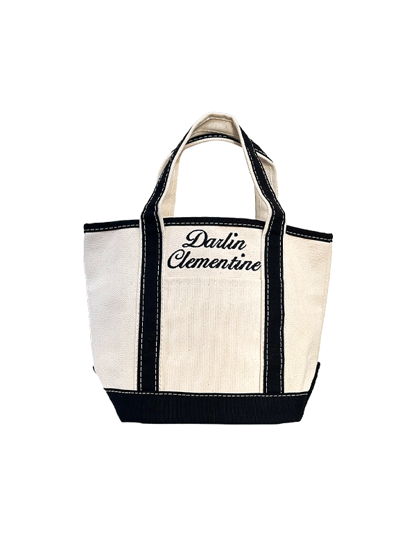 Vintage-inspired design stitched directly onto front of tote, as well as an embroidered text accent on the other side, located above the external pocket.
