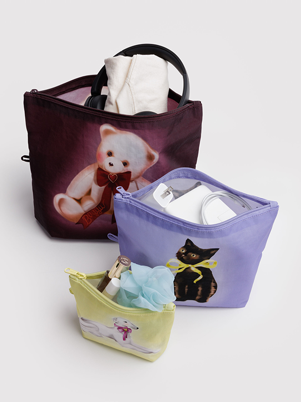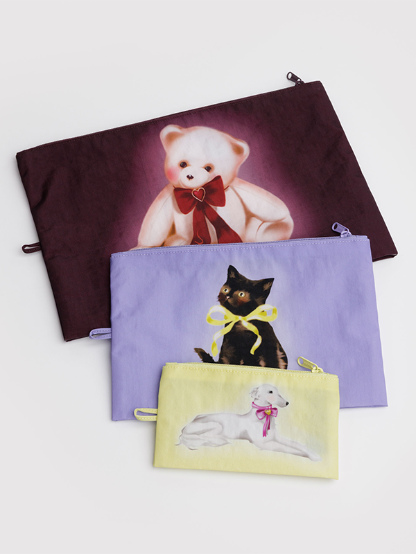 Whatever you're toting—coins, cords, or an extra pair of shoes—this set of three all-purpose pouches keeps it together. They expand to hold your essentials and lay flat when not in use.✦ Set of three pouches.