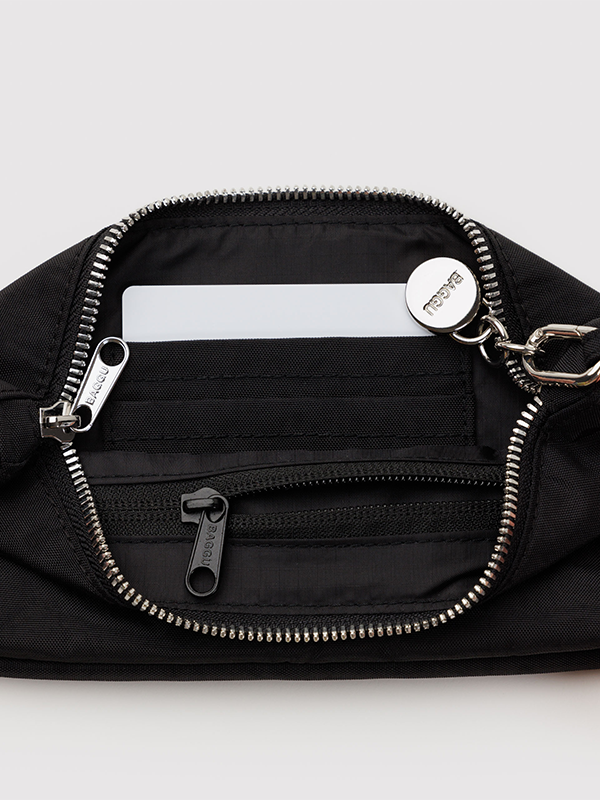 A sleek, compact bag designed to maximize storage while minimizing volume. An interior zip pocket and card slots eliminate the need for a wallet. Adjustable shoulder strap so you can carry as a clutch or over the shoulder.
