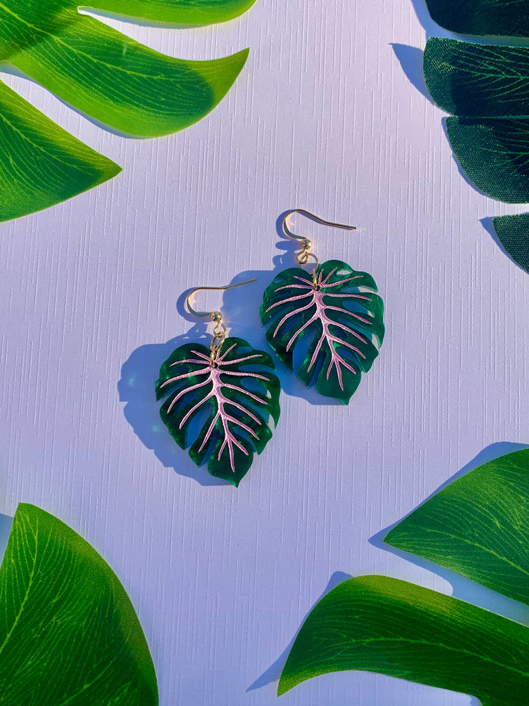 Mini Monstera Earrings