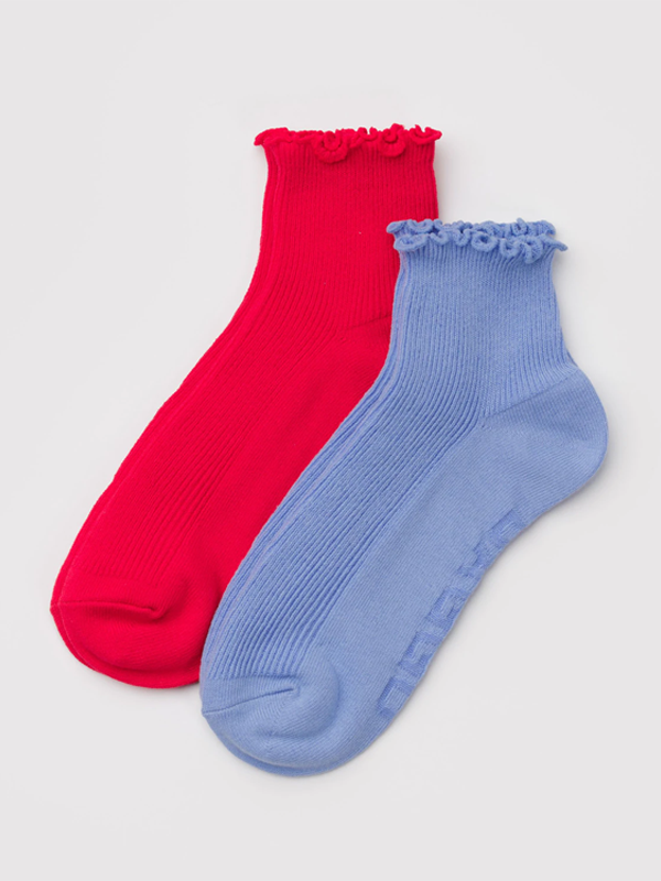 Lettuce Edge Sock: Light Blue & Red (Set of 2)