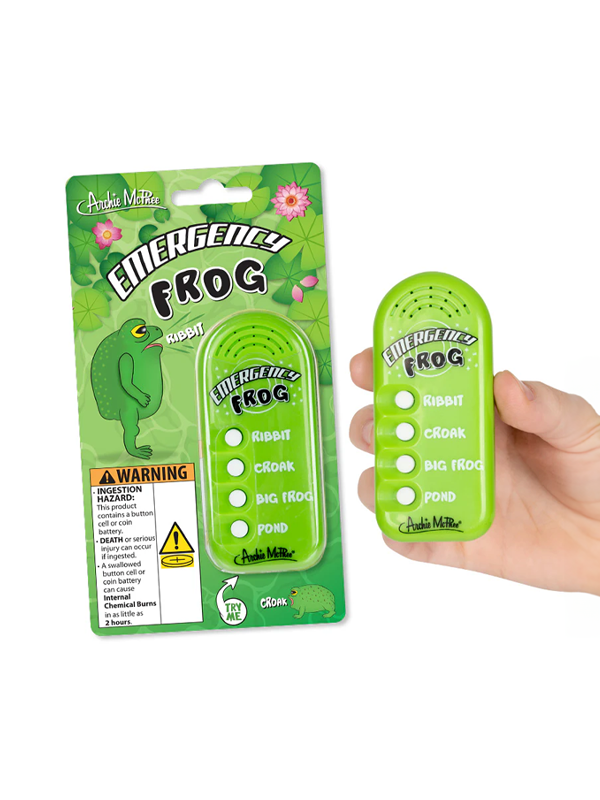 This 3-1/2" electronic Emergency Frog button includes four sounds — ribbit, croak, big frog and pond — so you can give a small indication that you’ve heard enough and it’s time to listen to the frogs.