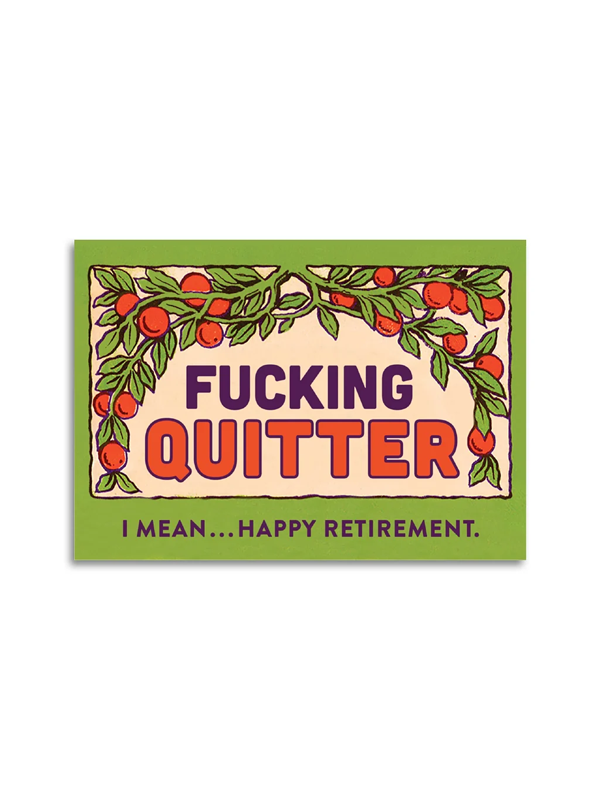 "Fucking quitter — I mean... Happy Retirement"