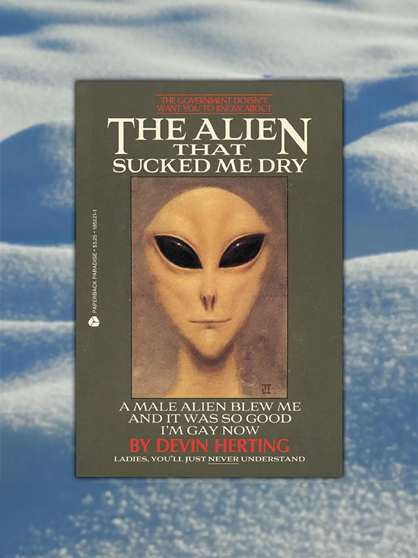 ✦ Full-color postcard featuring a gloriously absurd vintage style book cover.