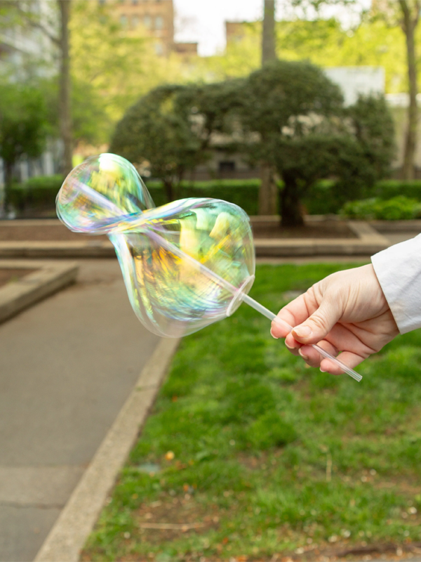 Simply spin to create a dazzling array of iridescent rainbow shapes. Great for parties and play dates.