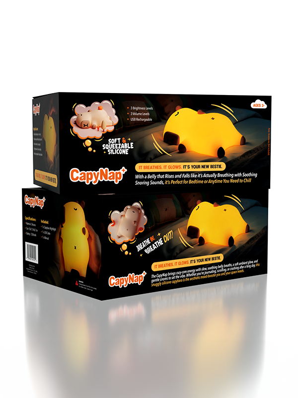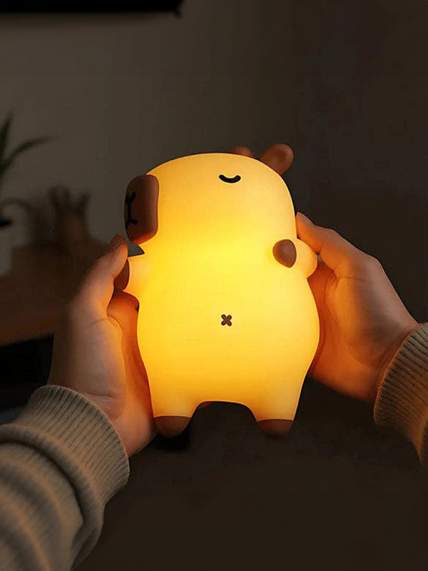 With gentle rhythmic "breathing" and a soft ambient glow, this capy-cutie is the perfect night table companion!