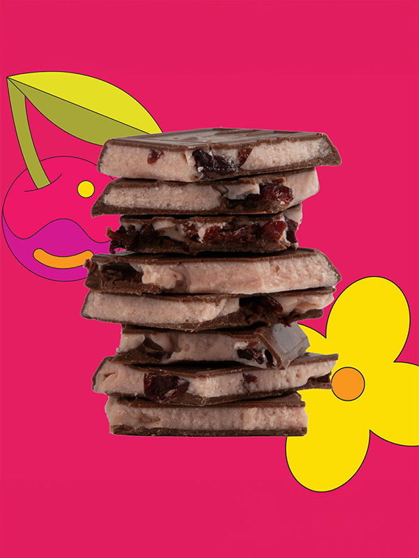 A deep, glossy dark chocolate shell gives way to a creamy white chocolate center infused with bright cherry sweetness. Its rich meeting playful, silky meeting juicy, a little tart spark wrapped inside smooth decadence. Every bite feels like the moment spring finally pushes through the last of winter’s chill.