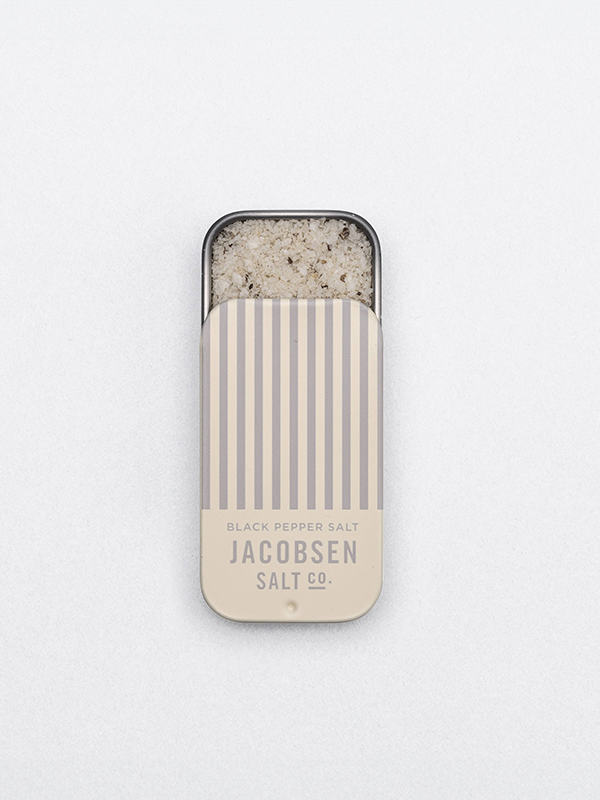 Jacobsen's kosher salt infused with freshly ground Tellicherry peppercorns for a bright, briny take on a classic combo.