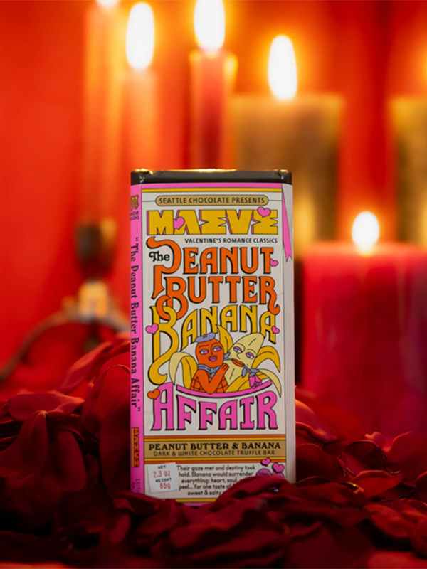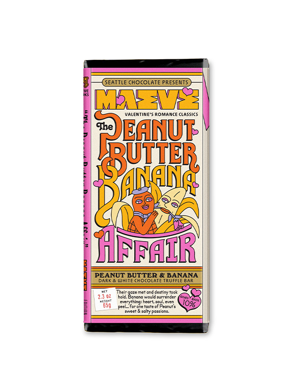✦ Ingredients: white chocolate (cane sugar, cocoa butter, milk, soy lecithin, natural vanilla), organic dark chocolate (cocoa mass, cane sugar, cocoa butter, soy lecithin, vanilla), peanut butter (roasted peanuts, salt), banana chips (bananas, coconut oil, cane sugar, natural flavor), sea salt, organic natural flavor. Contains milk, soy, and peanuts.
