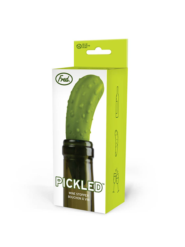 In a pickle about how to preserve your pinot? Well, get this gherkin workin' and your problems are solved! Fred's Pickled bottle stopper is the perfect way to keep your wine fresh and make your bar stand out. After all, you're kind of a big dill. Crafted from 100% food-safe silicone.