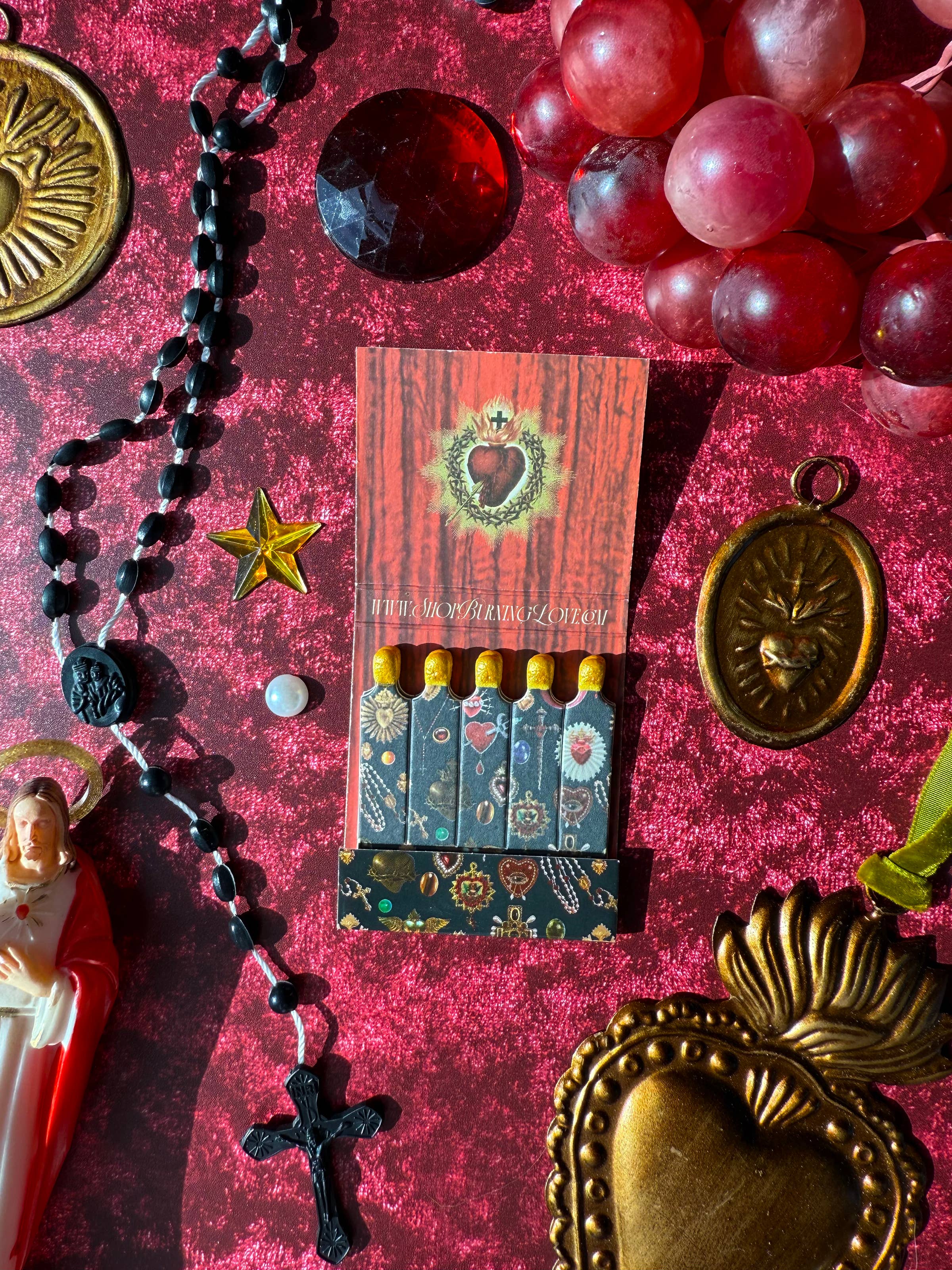 This is the perfect matchbook for sinners and lovers alike. It features our iconic sacred heart print — serving sacred, sanctimonious Catholic guilt.