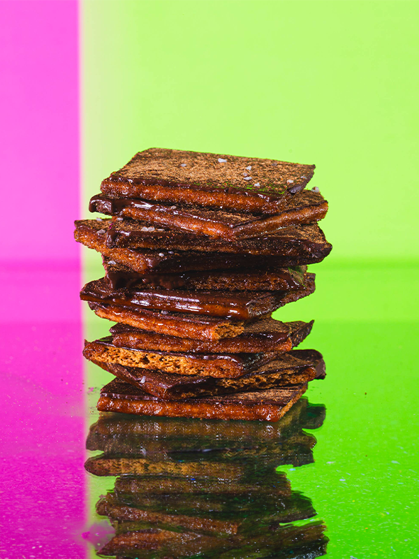 ✦ Graham cracker base, salted handmade toffee, ethically sourced semi-sweet chocolate, and sprinkled with gingerbread spice.