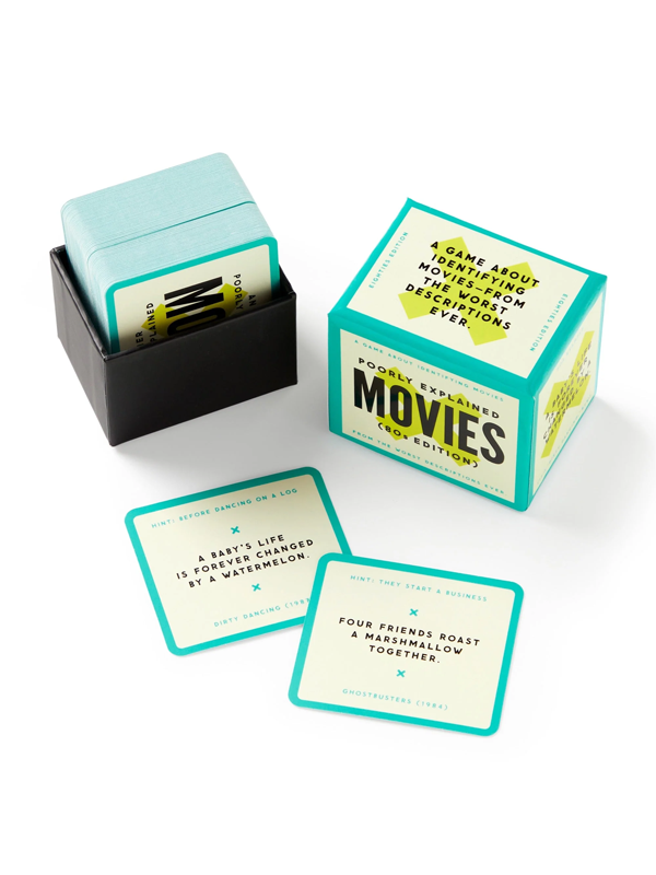 Compete with your friends to identify popular 80s movies from the most convoluted movie summaries possible. Has your mom ever tried to explain a film that she just watched? Did it make one ounce of sense? Of course not–and that’s precisely the inspiration for this game. For example: A baby's life is forever changed by a watermelon. Psst, it’s 'Dirty Dancing’.