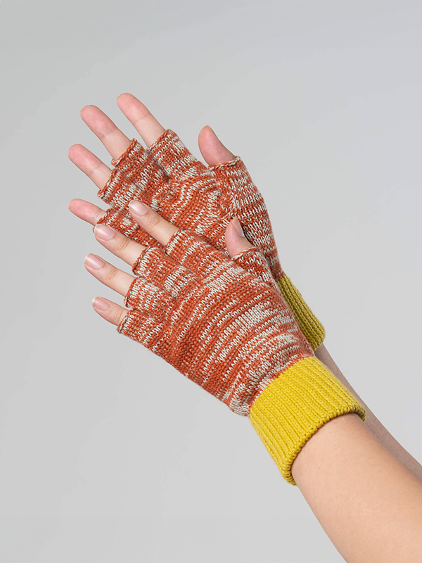 Colorblock Fingerless Gloves: Jade Rust