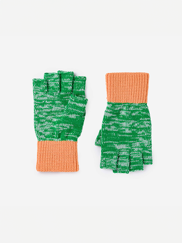 Colorful two-tone marled knit glove with contrasting ribbed cuff designed to keep out the cold.