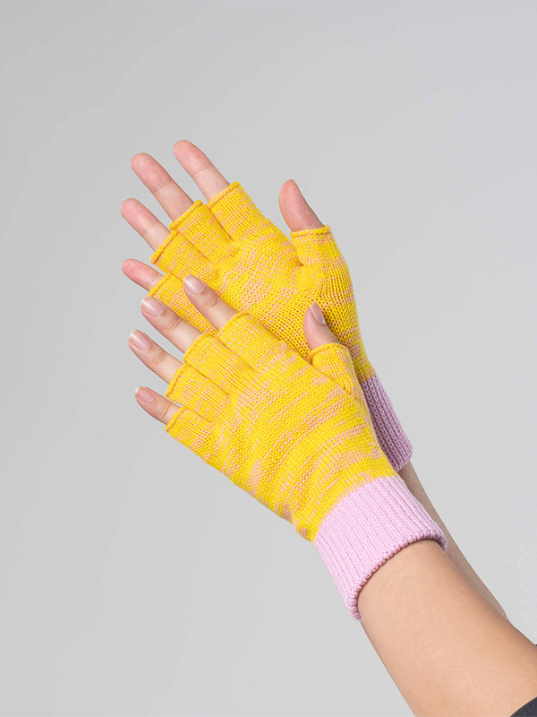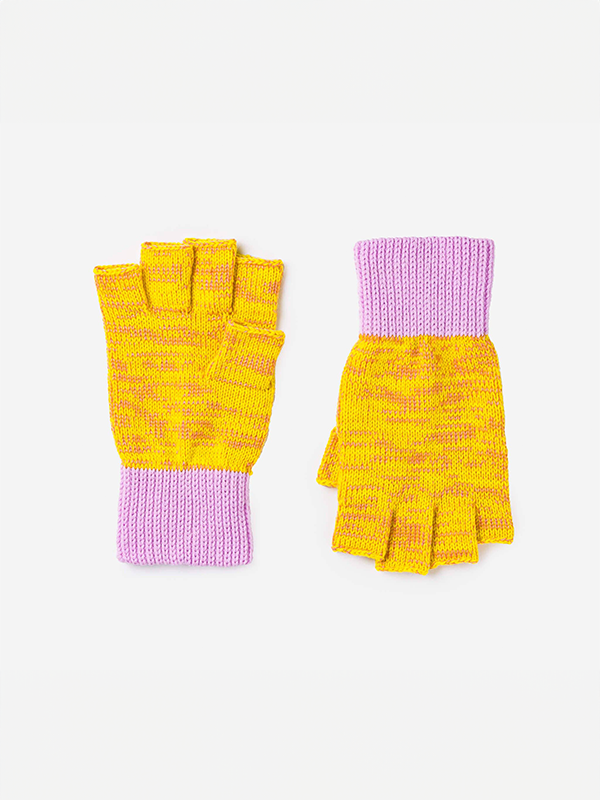Colorblock Fingerless Gloves: Yellow Pink