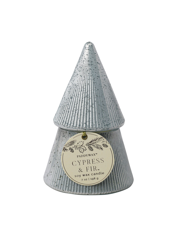 Ribbed Mercury Stacked Tree Candle: Cypress & Fir 7oz. (Silver)