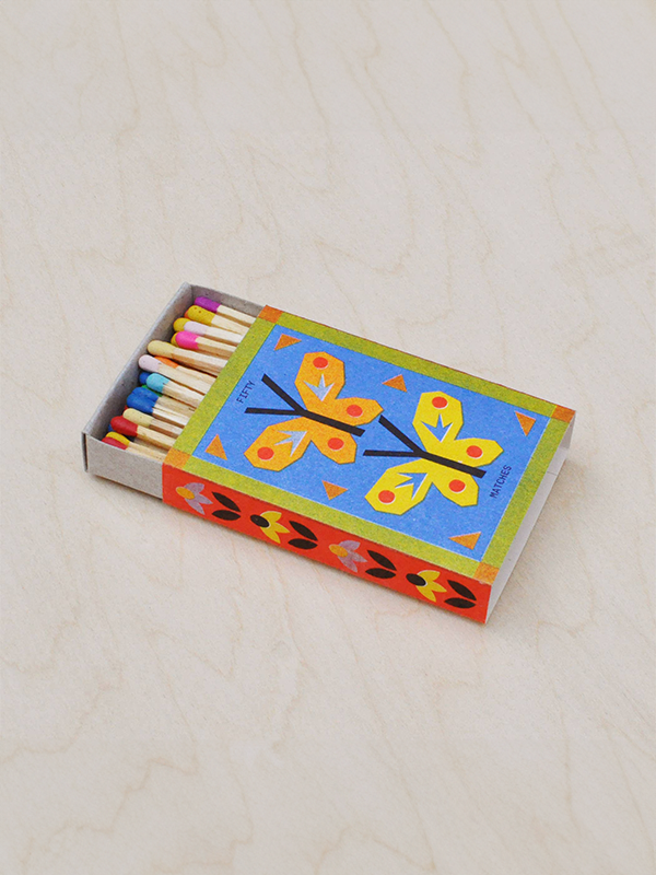 ✦ 50 multi-colored, 3" matches packed into a sweet little matchbox.