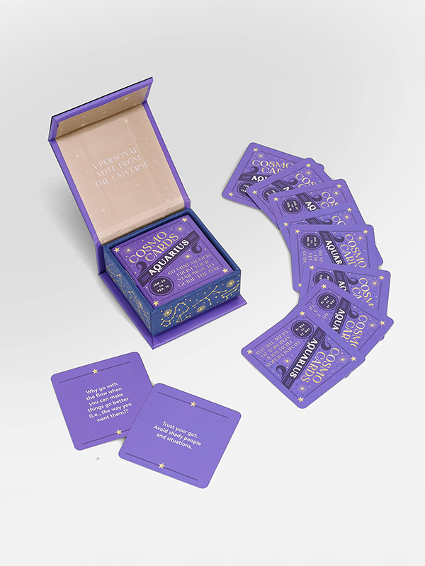 Pull a Cosmo Card and let the words of wisdom, knowledge, humor, or commiseration flow through you. The set can be used daily, weekly, at a moment of stress or uncertainty, or consulted like an oracle deck for clarity and guidance anytime it’s needed.