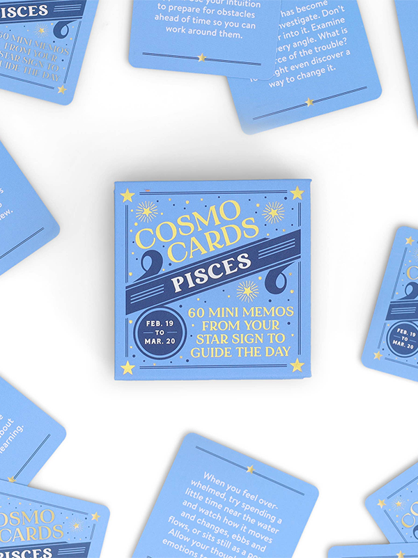 For daily affirmation seekers and zodiac fans, Cosmo Cards offer a new experience in personal transformation and self-care. Tucked into a bright and beautifully designed little package, a set of 60 cards holds sometimes-sassy, always-encouraging, inspirational, and practical messages we all need to hear from time to time, such as: