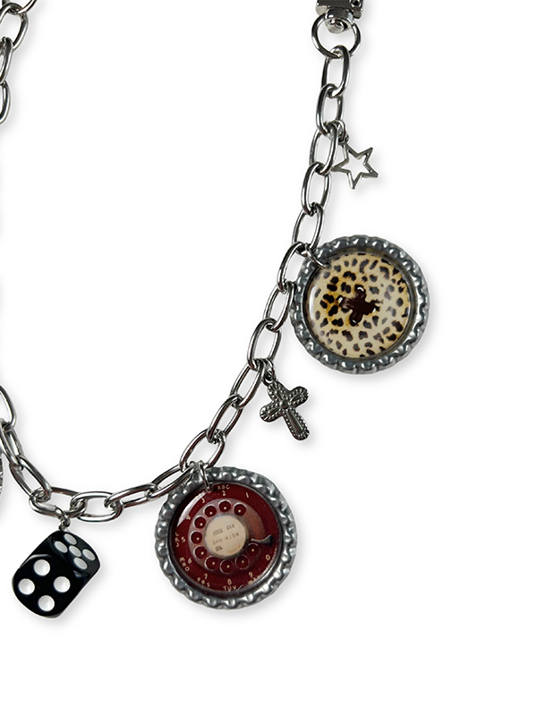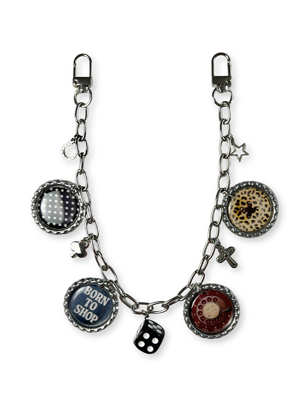 ⦠Bag chain made with sturdy stainless steel silver hardware and decorated with repurposed aluminum bottle caps and silver charms.