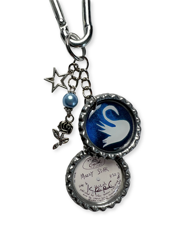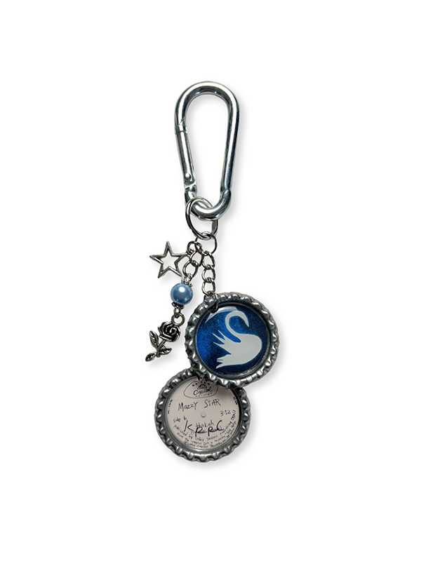 ✦ Bag charm inspired by Mazzy Star, made with repurposed aluminum bottle caps and silver charms.