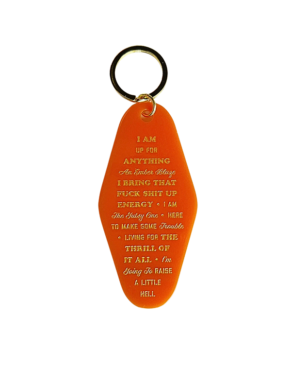 ✦ Single-sided acrylic motel keychain. ✦ Measures approximately 3.5" x 1.75".✦ 1" gold keyring.