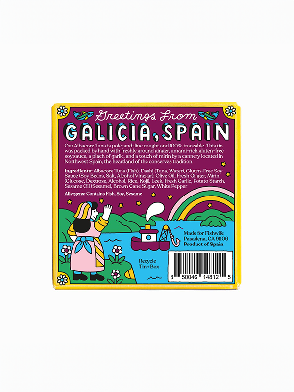 This tin was packed by hand with freshly ground ginger, umami-rich gluten-free soy sauce, a pinch of garlic, a splash of rice vinegar, and a touch of mirin by a cannery located in Northwest Spain, the heartland of the conservas tradition.
