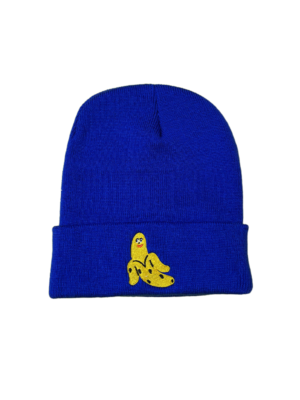 ⦠Embroidered knit beanie.